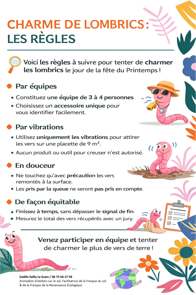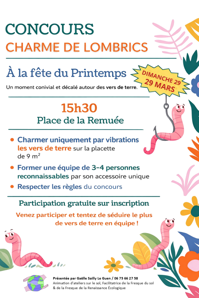Le concours de charme de lombrics se déroulera à 15h30, dans le cadre de la fête du printemps.